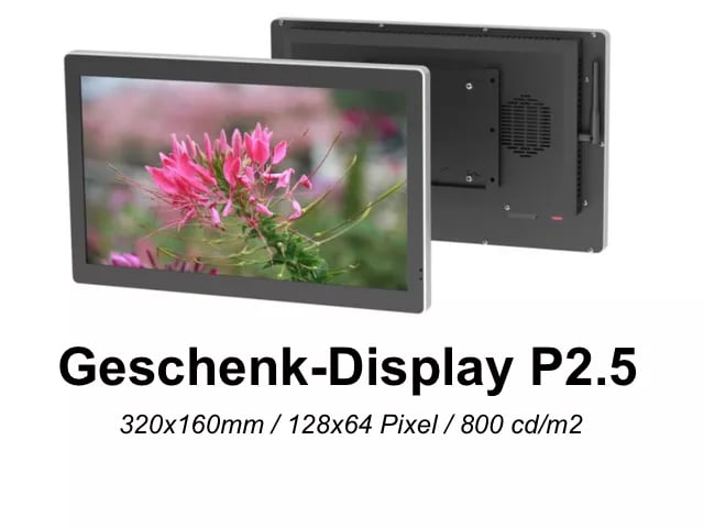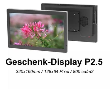 Als einer der ersten 50 Kunden, die ein Poster-Screen bei uns kaufen, erhalten Sie zusätzlich ein kleines LED-Display (P2.5, 320x160mm) GRATIS! Perfekt für Nebenanzeigen oder Informationsaufgaben.